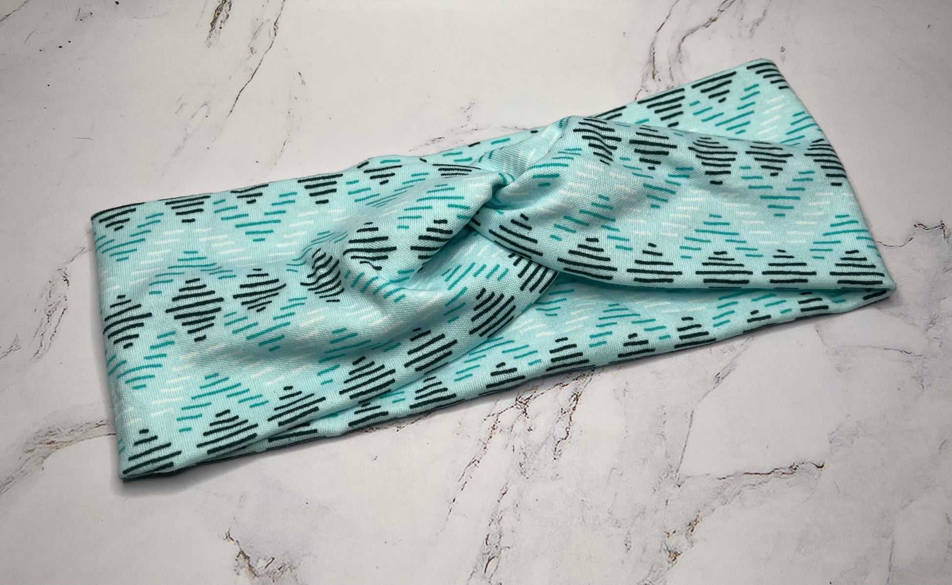 A fun shade of blue with lines in a geometric shape make this headband fun and versatile.