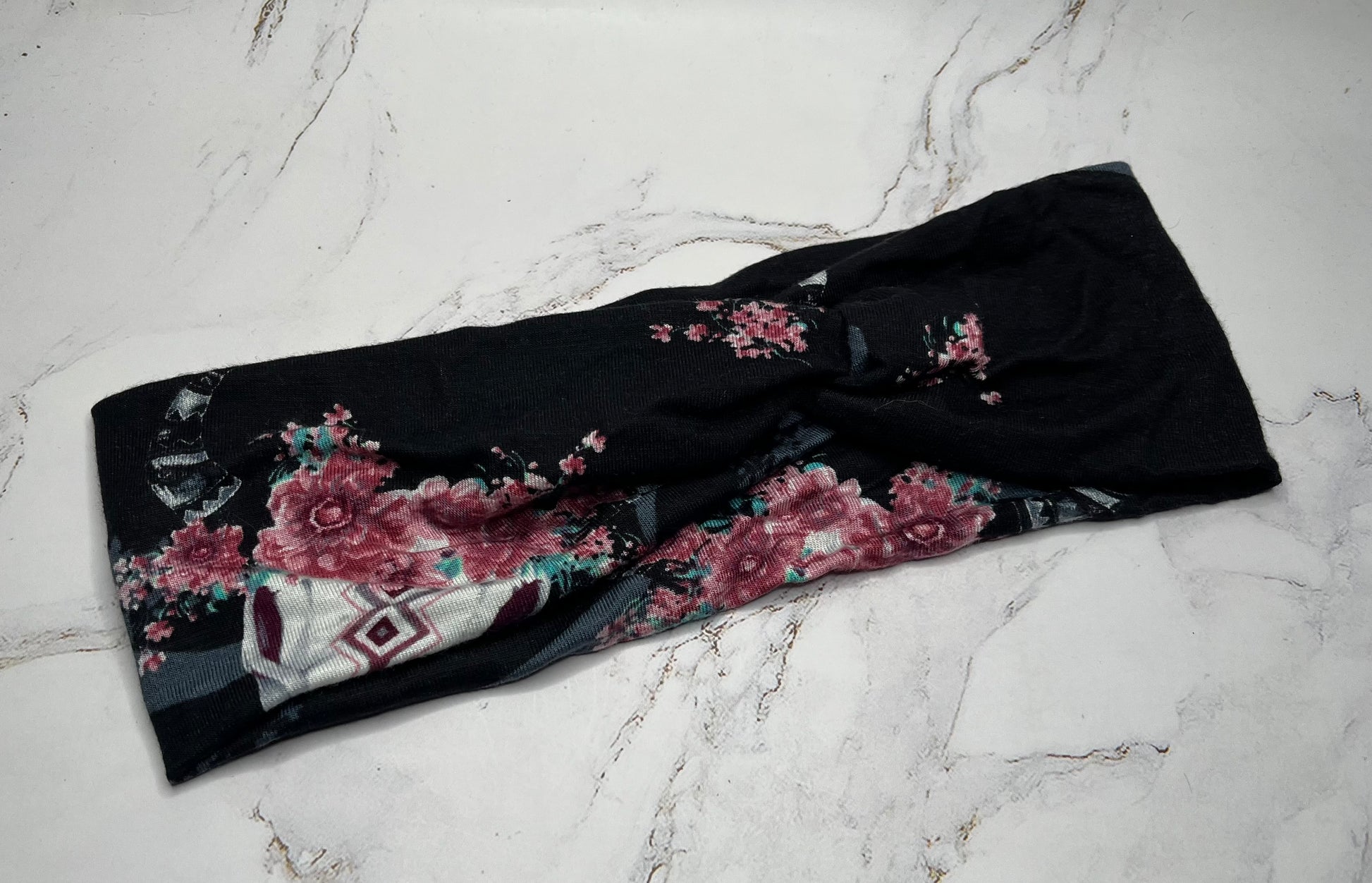 Perfect for rodeo season this floral bullhead headband is light weight. Made out of super soft knit this headband won’t leave you with a headache at the end of the day.
