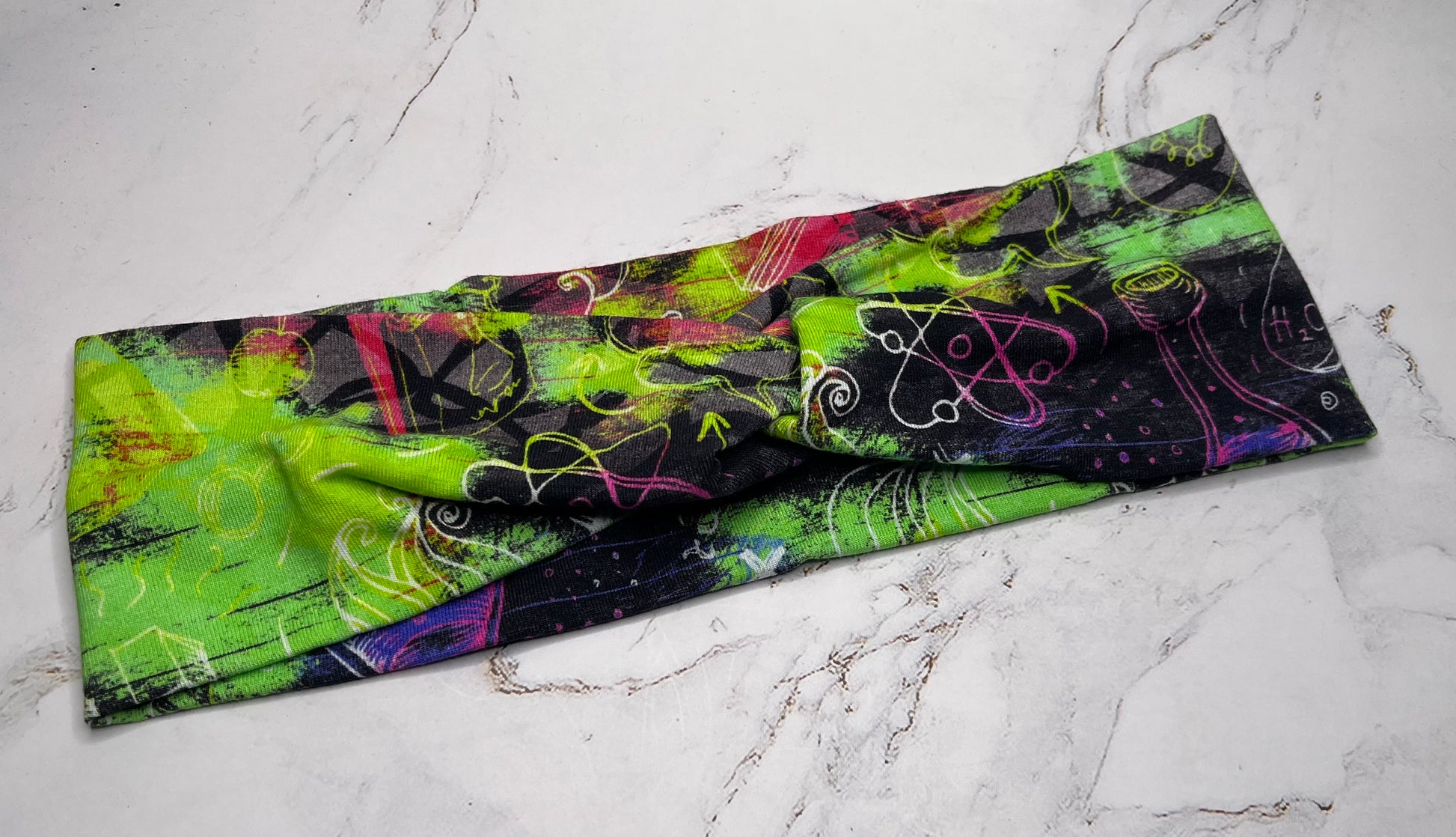 Neon for any science nerd. Made out of bamboo lycra this headband is light weight and comfortable for wearing all day long.