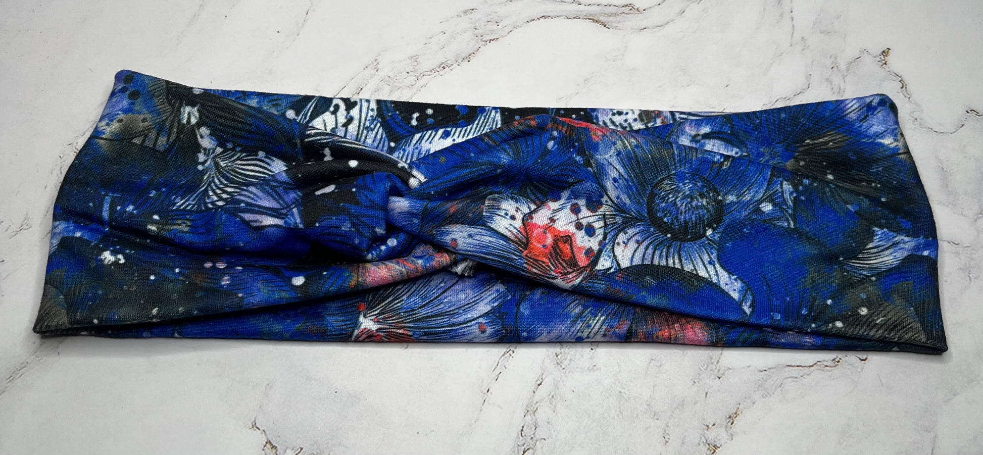 Sketched red, white and blue flowers are perfect for summer patriotism. Made out of double brushed polyester this headband is the perfect addition to your summer celebration outfit.