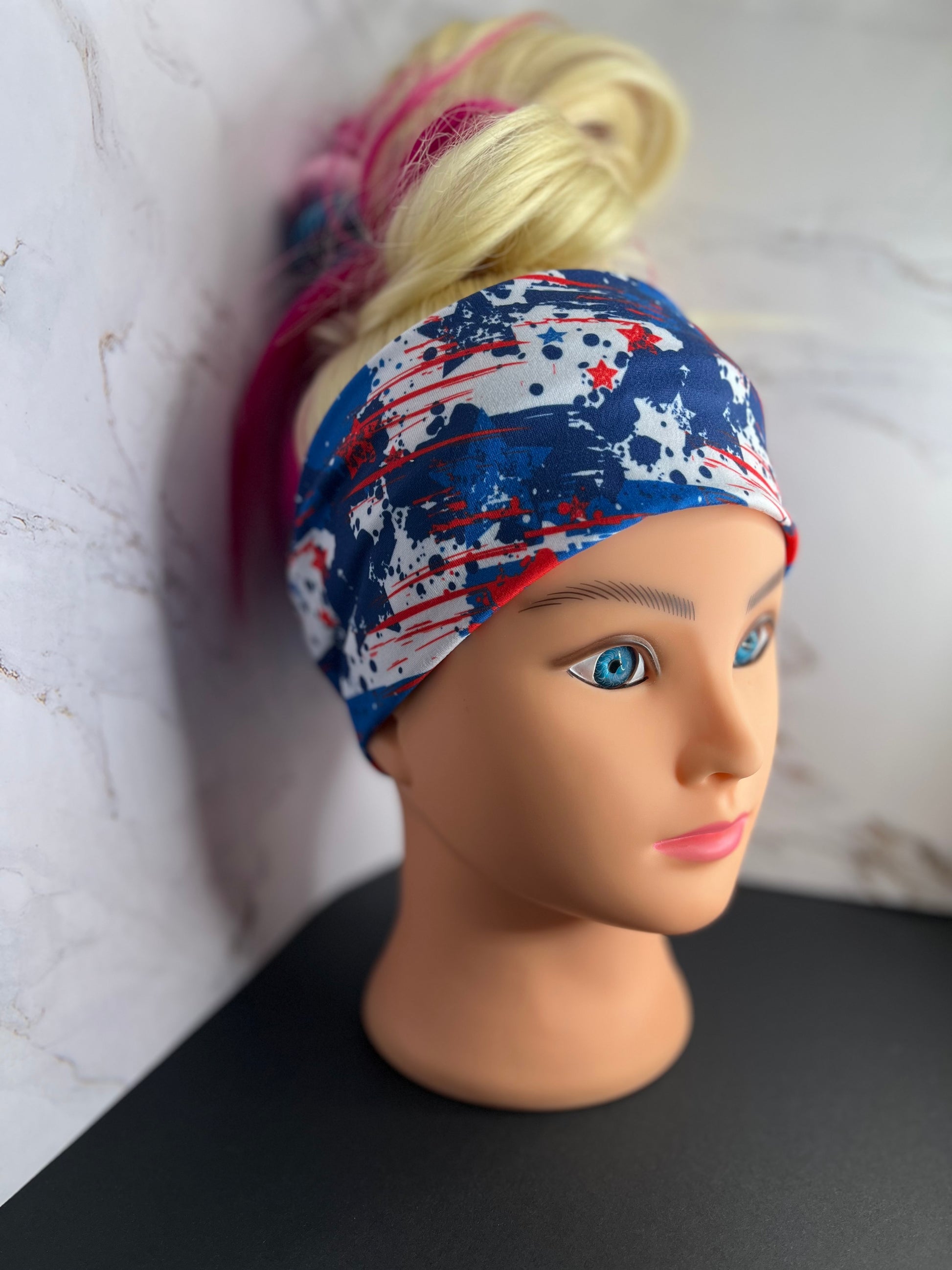 Patriotism, red, white and blue with stars streaking across it. Show off your patriotism this summer. This headband will go with so many different outfits, tank tops, dresses, t-shirts. The options of what to wear this with are endless.